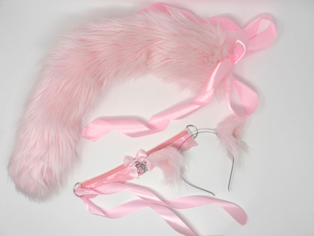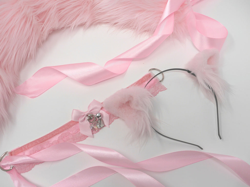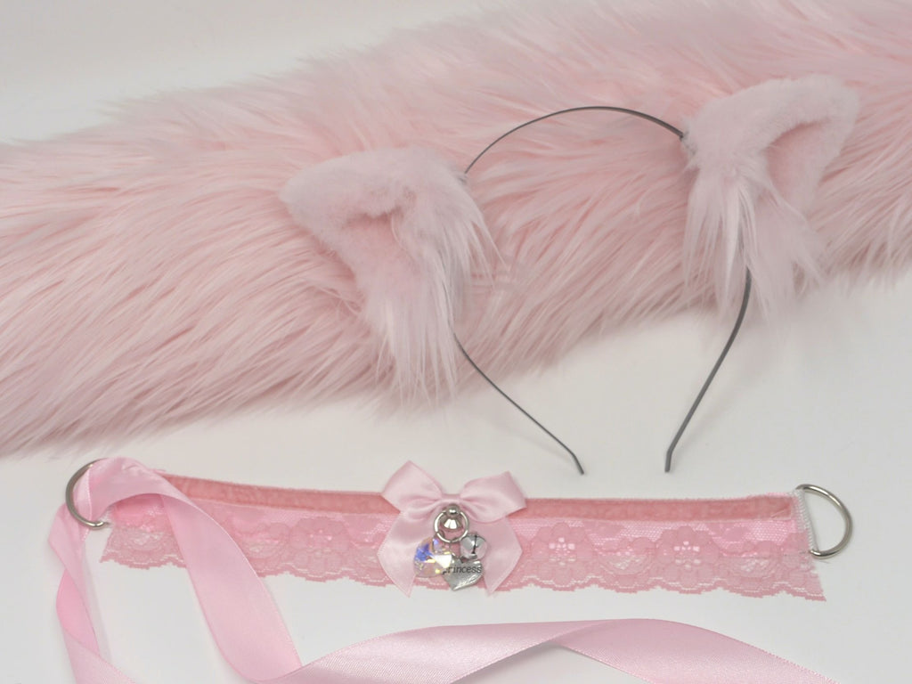 A full kitten play set of ears, tail and collar. All items are handmade and bespoke.