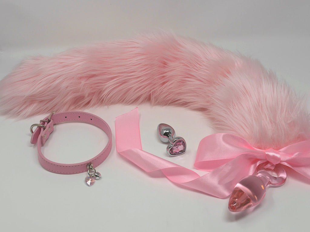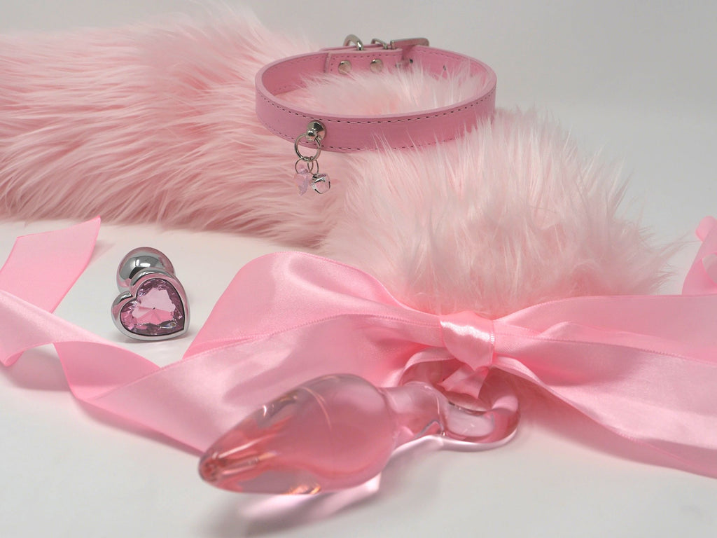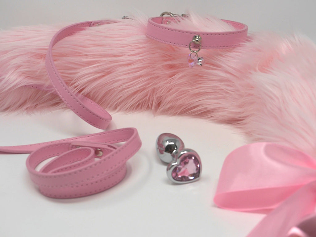 A kitten play set of tail, collar & plugs. All items are handmade and bespoke.