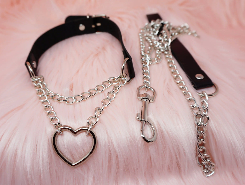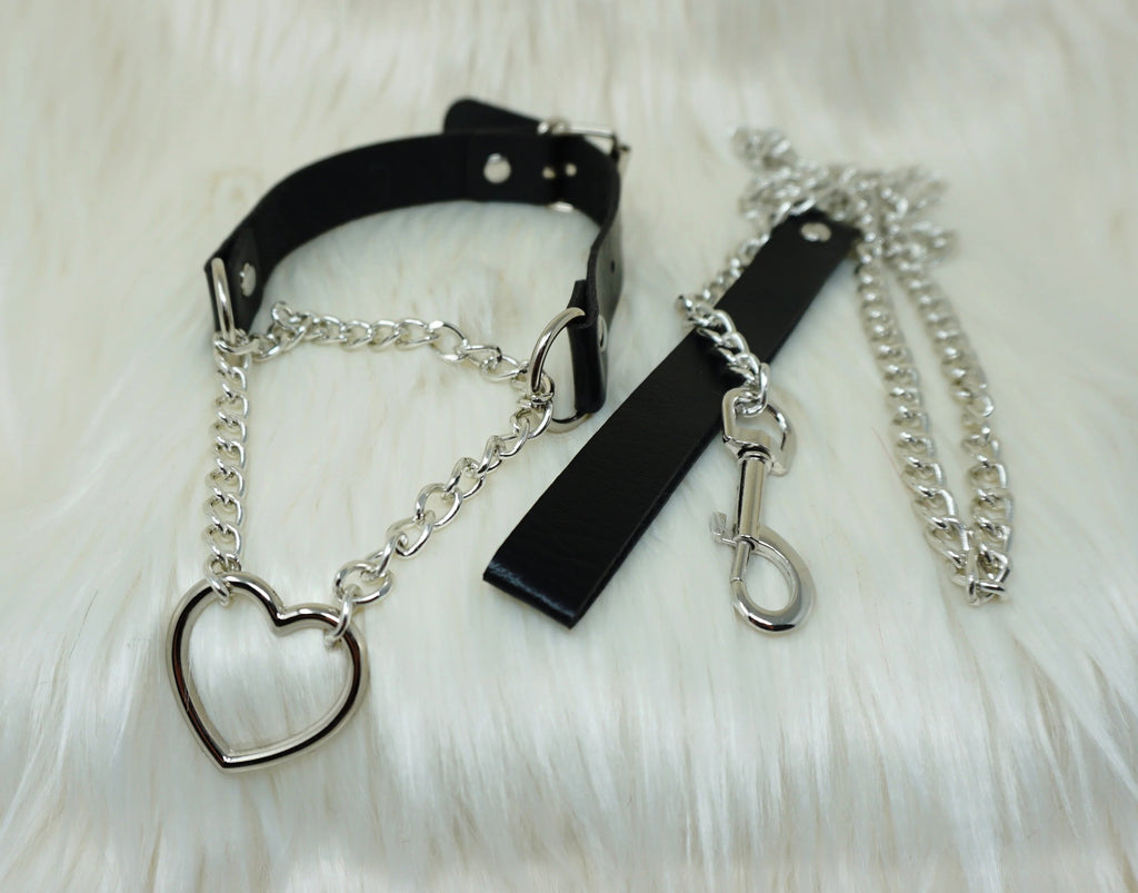 Made with Vegan/Faux Leather, includes matching chain leash.
