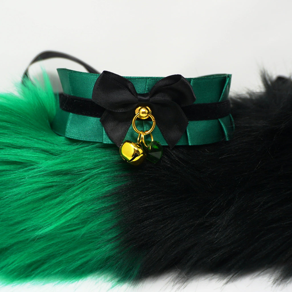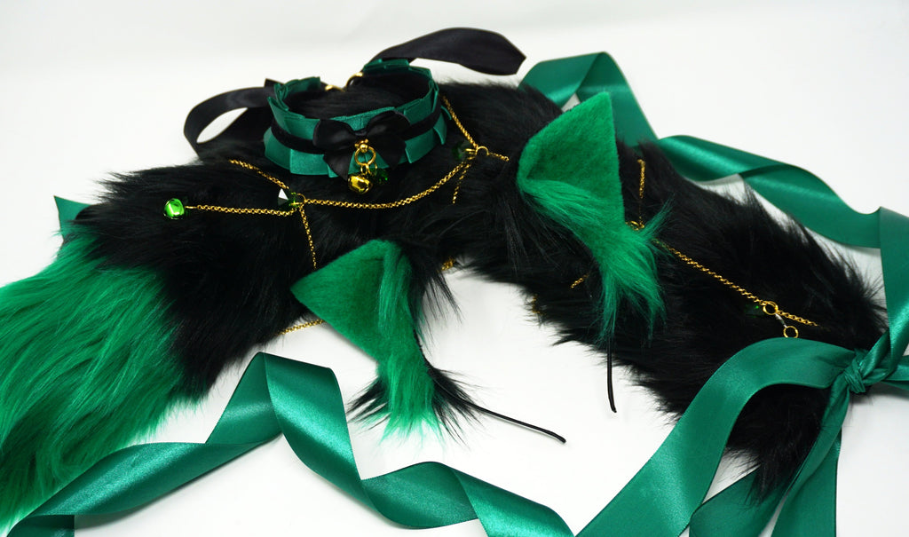 The 26 inch tail made with luxury black & green faux fur. The fur is long pile, making it soft, silky & swishy!