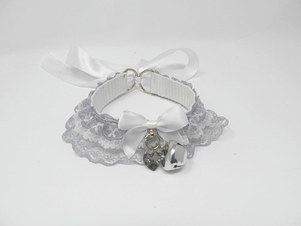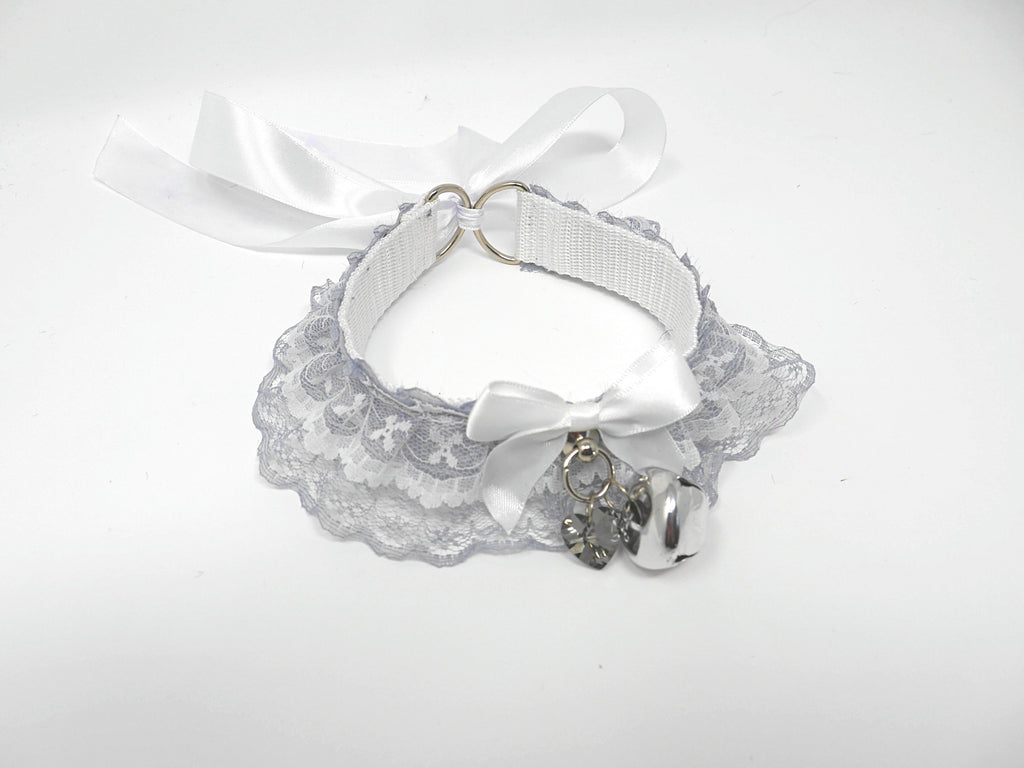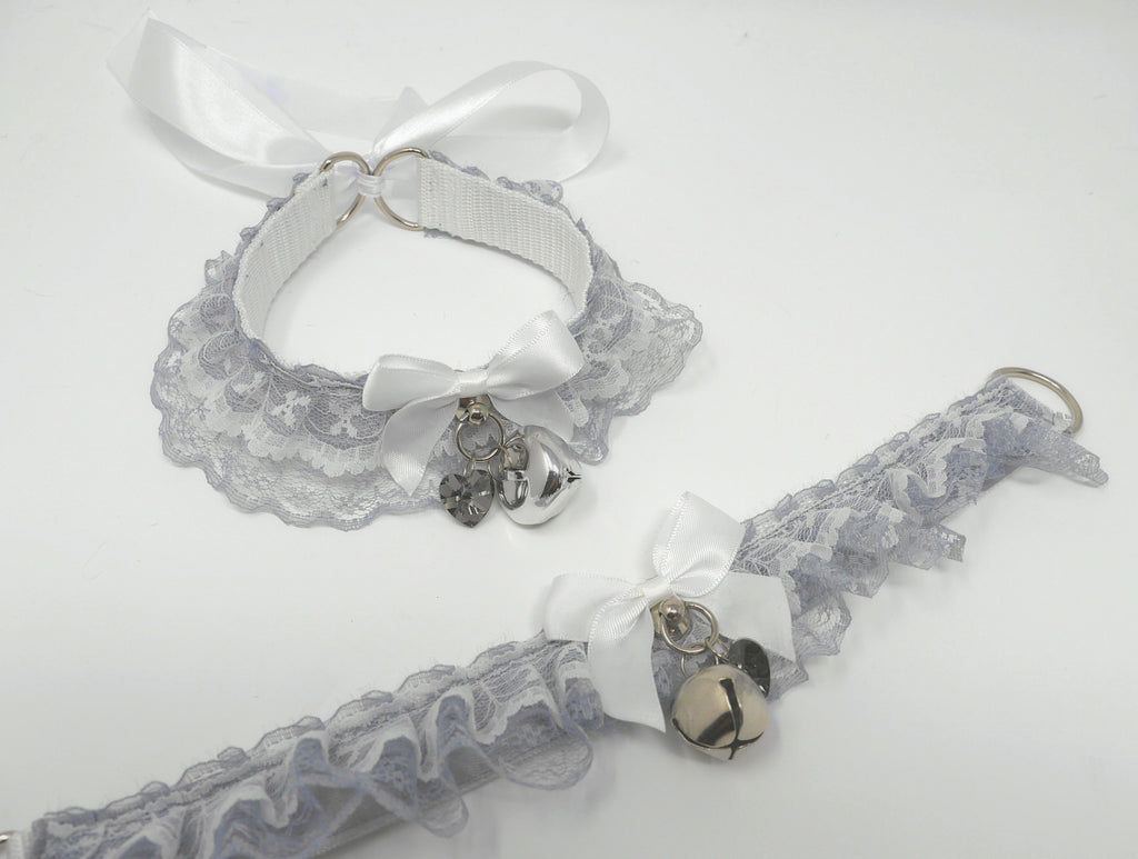 Beautiful double layered ruffles of grey and white lace and satin underlay.