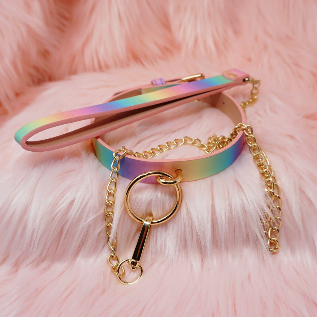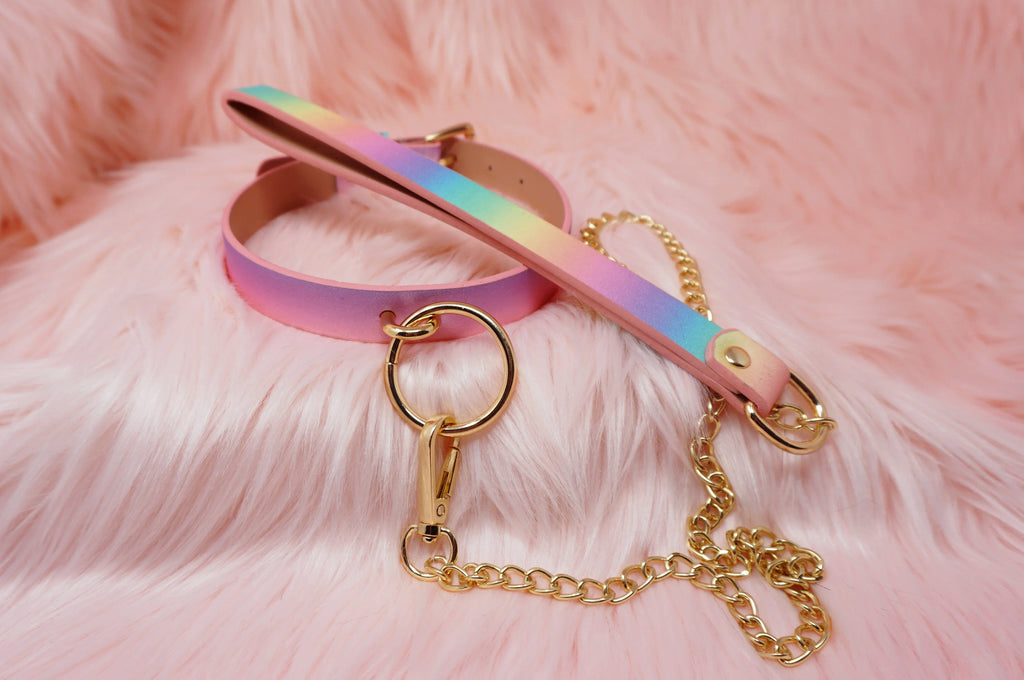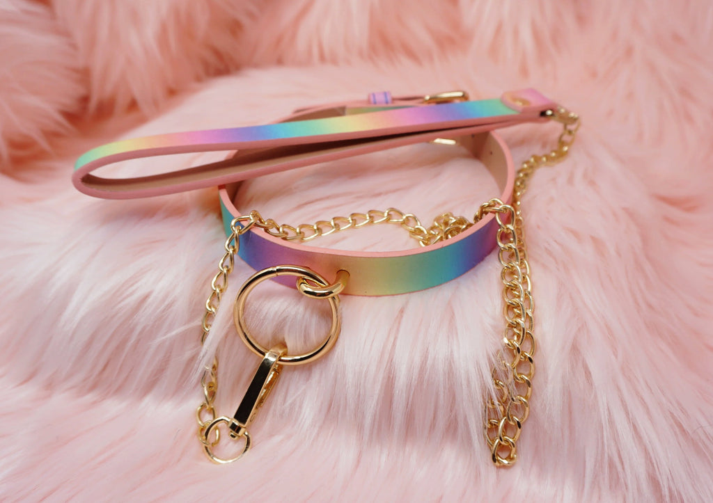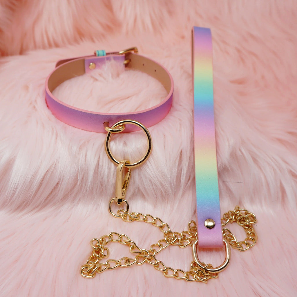 A collar and leash set which is cruelty free and vegan, made entirely from faux leather. This set has a subtle glittery effect when it catches the light - so pretty! ❤
