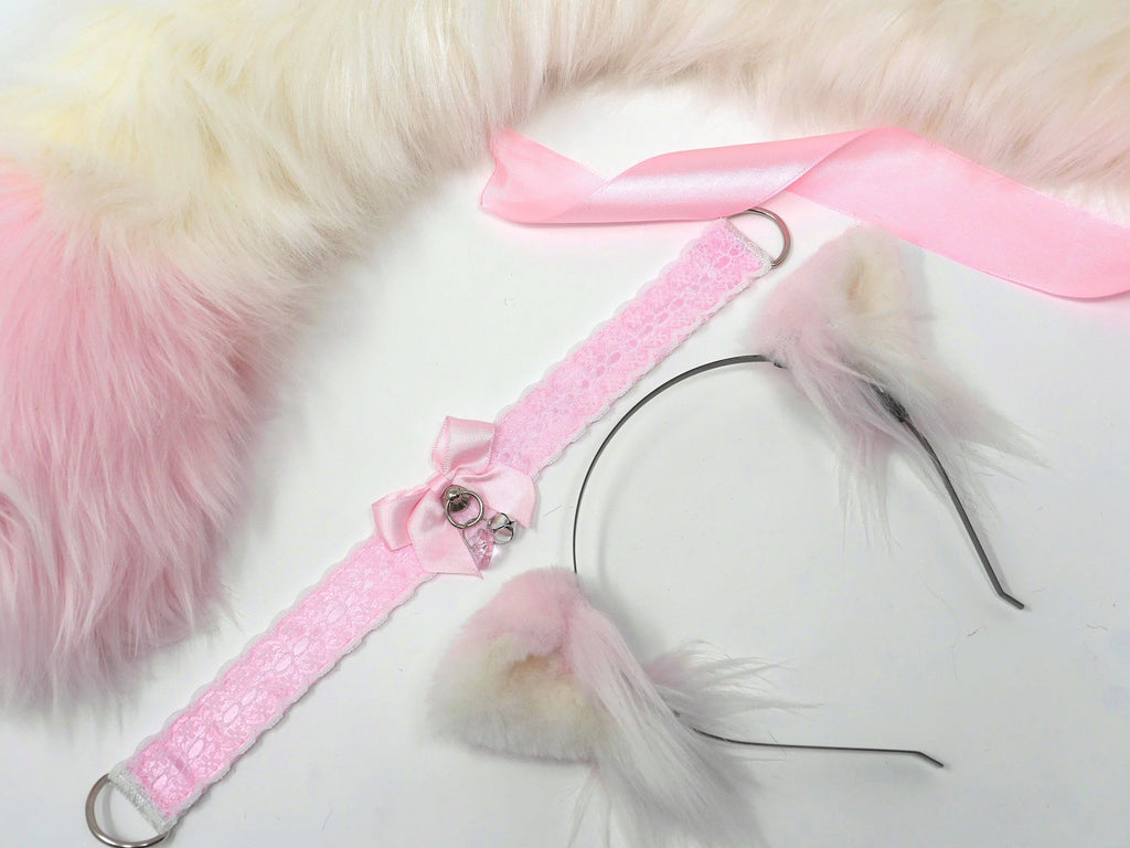 A full kitten play set of ears, tail and collar. All items are handmade and bespoke.