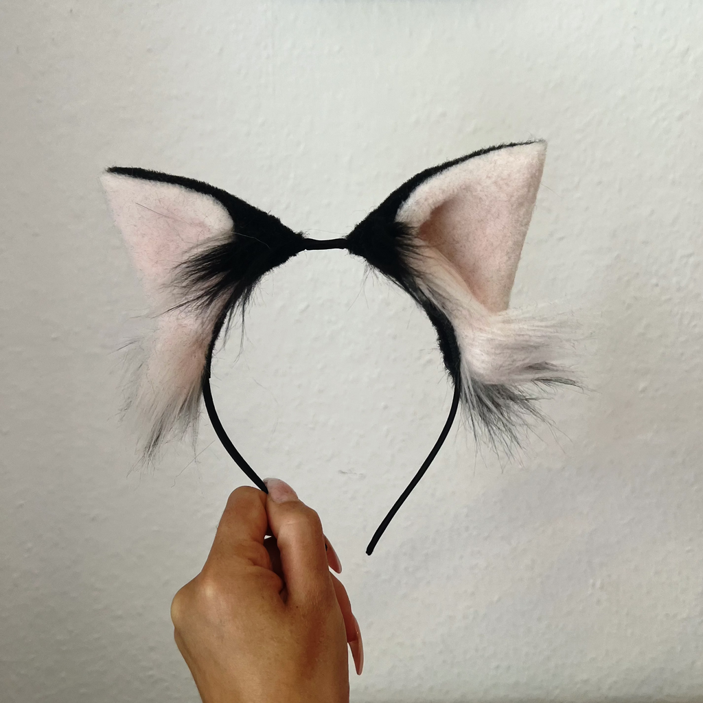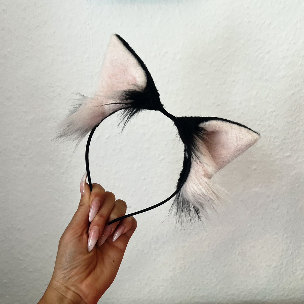 Kitten ears made with luxury faux fur. The ears are trimmed to create their kitten shape, with fluffier pieces left at the edges.
