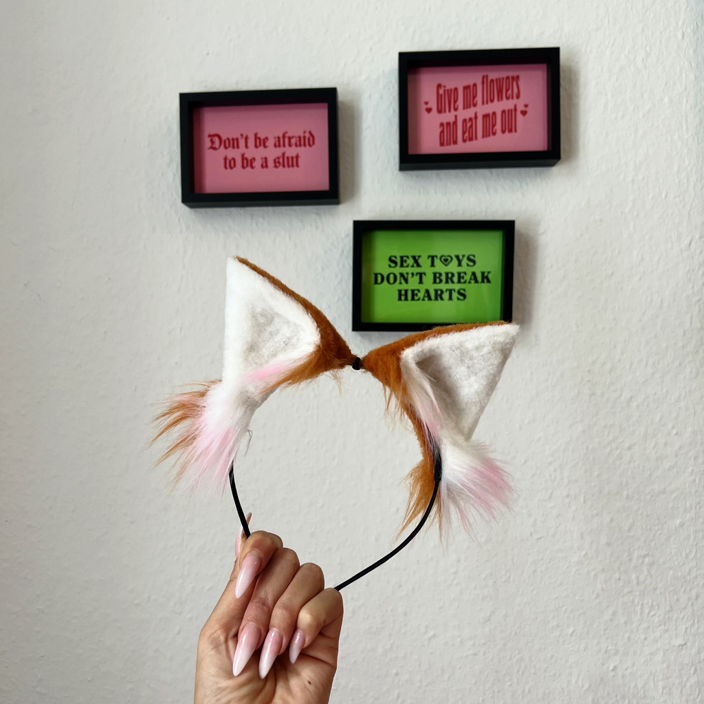 Kitten ears made with luxury faux fur. The ears are trimmed to create their kitten shape, with fluffier pieces left at the edges.