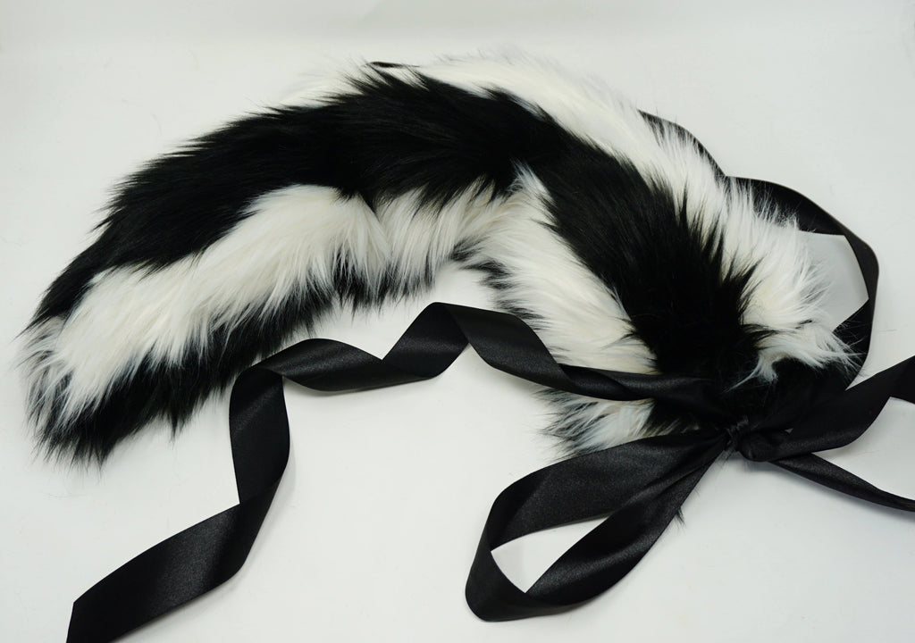 26 inch tail made with luxury faux fur. The fur is long pile, making it soft and silky.