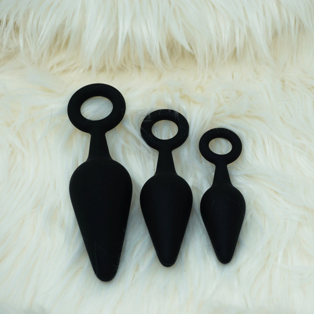 A set of three black silicone plugs which can be used with Kittens & Kink tails.