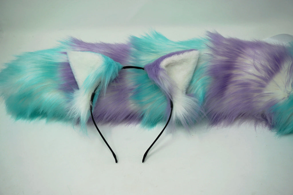 The matching ears are trimmed to create their kitten shape, with fluffier pieces left at the edges. All ears have elastic tabs at the base, allowing them to be moved and positioned upon the headband.