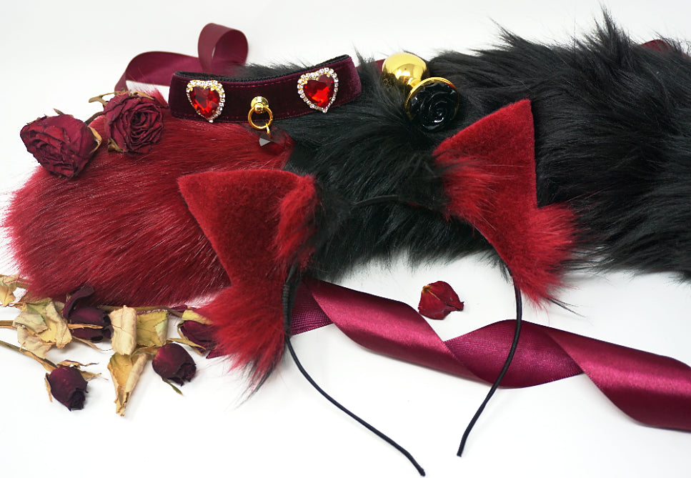 The matching ears are trimmed to create their kitten shape, with fluffier pieces left at the edges. All ears have elastic tabs at the base, allowing them to be moved and positioned upon the headband.